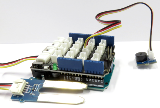 Eingabe: Bodenfeuchtesensor und Ausgabe: Piezo-Buzzer